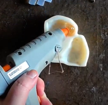 1.- Con la Pistola Encoladora PX 300 agregamos adhesivo sobre el molde de silicona con forma de pajarito. TIP: Hay que hacer presión hasta el fondo para ir rellenando todo el molde.