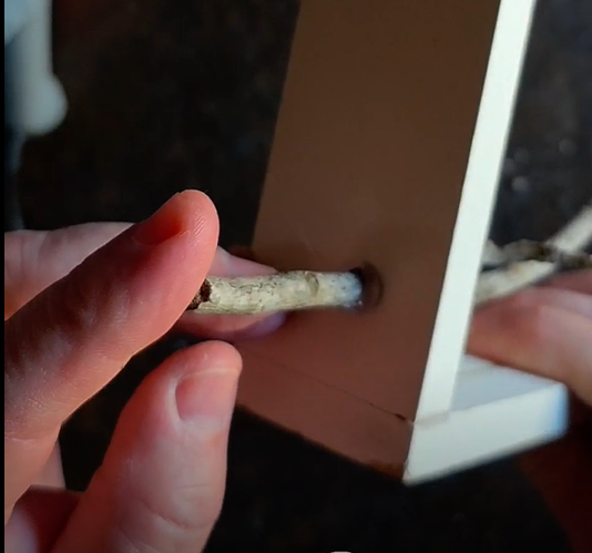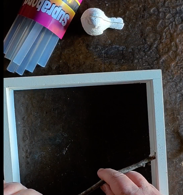 4.- Una vez que tenemos todos los cortes de la rama hay que adherirlos con la Pistola Encoladora al marco.