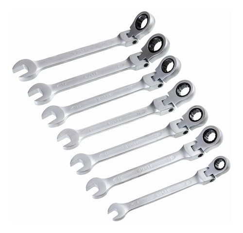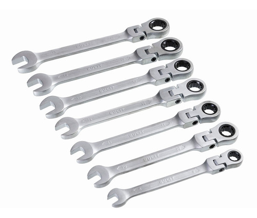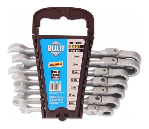 Contiene 7 llaves criquet articuladas Serie 800 de acero al cromo vanadio.