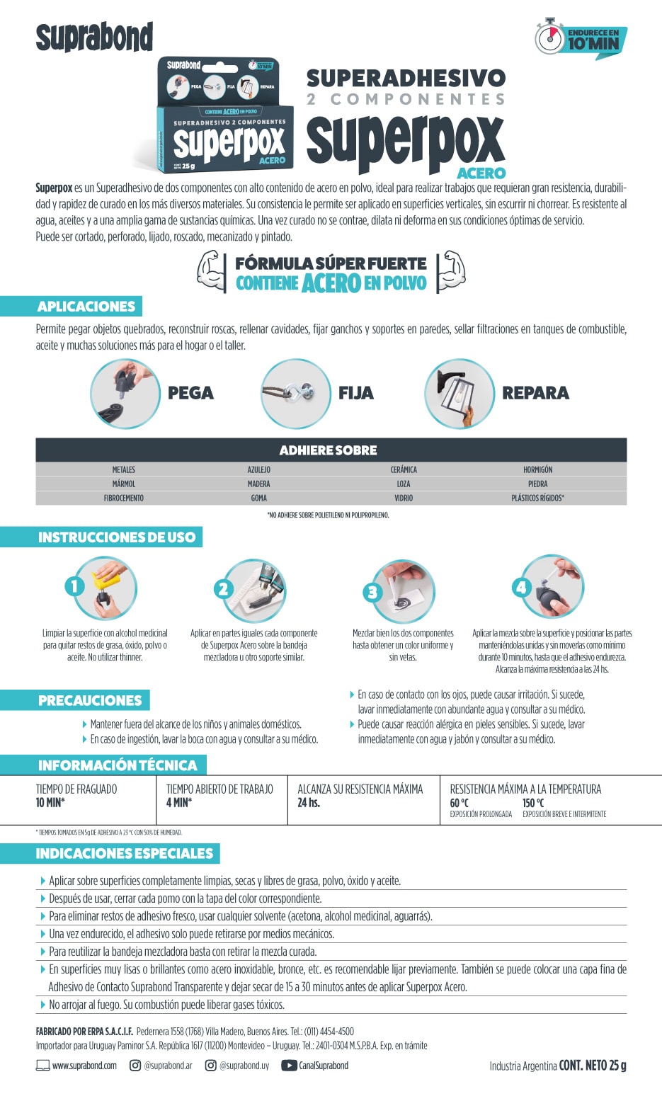 Superpox en un Superadhesivo de dos componentes con alto contenido de acero en polvo, ideal para realizar arreglos y reparaciones súper fuertes, resistentes y duraderas en los más diversos materiales. Seguir leyendo..