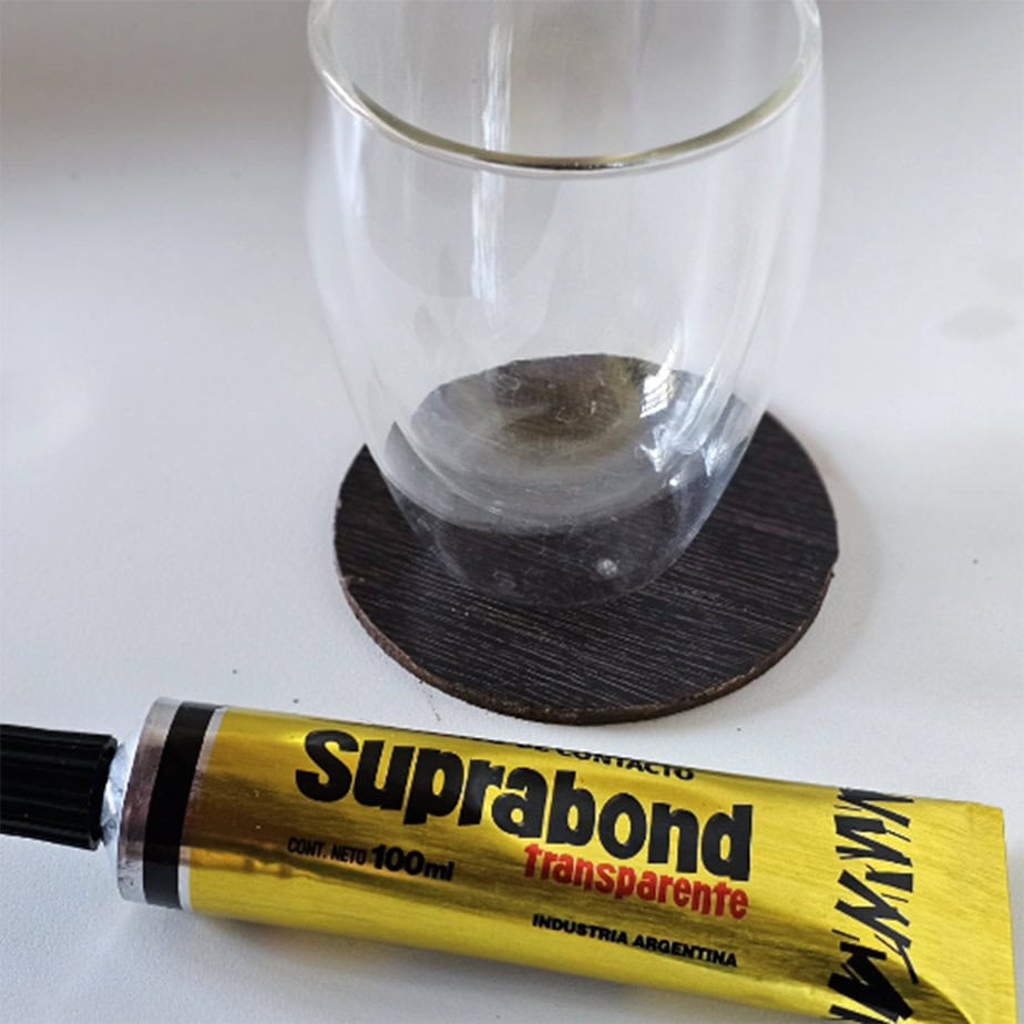 Teníamos unos sobrantes de cinta tapacanto y los transformamos en unos originales posavasos con Suprabond Transparente EXTRA FUERTE.