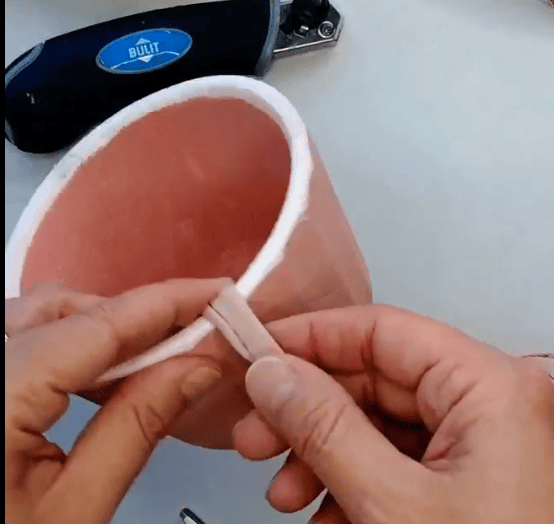 1.- Con el Cutter de BULIT, cortamos la parte superior del pote de helado, y luego vamos a pintarlo para que quede más lindo.