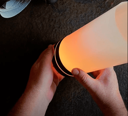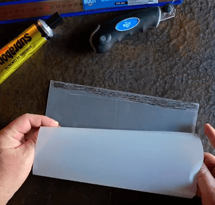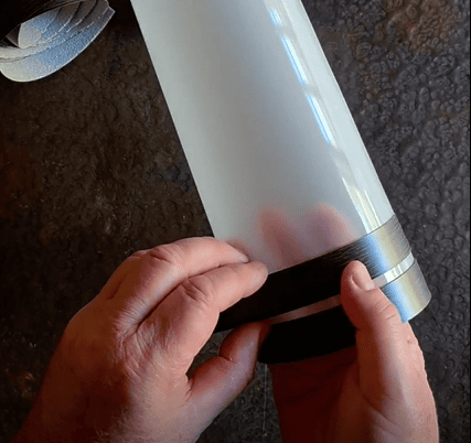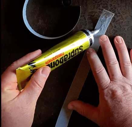 2.- Agarramos el tapacanto y medimos el cilindro para que nos quede perfecto a la medida que necesitamos, repetimos el paso ya que vamos a usar 2. Pegamos el tapacanto con Suprabond Transparente poniendo un poco y estirando con la espátula que te viene incluída en la caja.