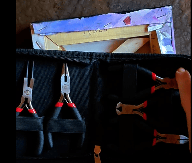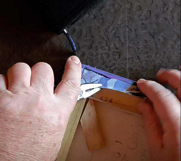 1.- Con las pinzas BULIT te vas a ayudar para sacar todos los ganchos que están agarrando la tela del marco de madera.
