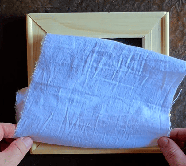 2.- Con un pedazo de tela que tengas en tu casa, vas a marcar la parte interna del cuadro para delimitar el área donde vamos a pintar.