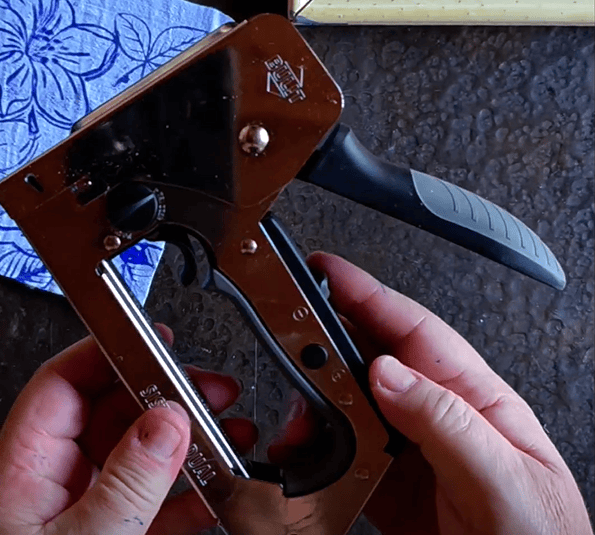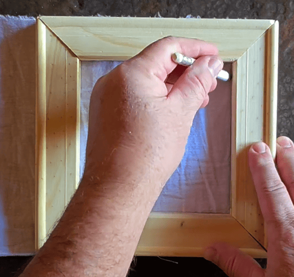 5.- Recortamos los excedentes de la tela, y vamos a armar el cuadro, junto a la engrampadora dúo de BULIT.